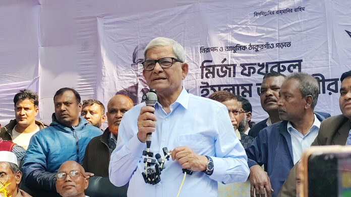 ঠাকুরগাঁও-১ আসনে বিএনপি মনোনীত ধানের শীষ প্রতীকের প্রার্থী ও দলটির মহাসচিব মির্জা ফখরুল ইসলাম আলমগীর বলেছেন, দাঁড়িপাল্লা মার্কা নিয়ে যে দলটি আজ ভোট চাইতে আসছে, তারা ১৯৭১ সালে মুক্তিযুদ্ধের সময় পাকিস্তানিদের পক্ষে অবস্থান নিয়েছিল।