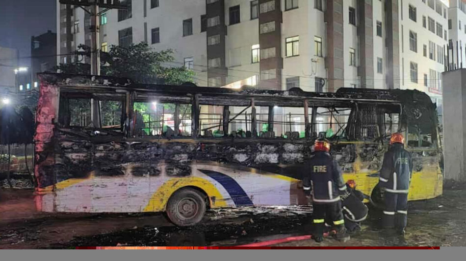 ডিইপিজেড ফায়ার সার্ভিসের সিনিয়র স্টেশন ম্যানেজার প্রণব চৌধুরী বলেন, ভোরে সরকার মার্কেট এলাকায় পার্কিং করা একটি বাসে আগুন দেন দুর্বৃত্তরা। পরে খবর পেয়ে ডিইপিজেড ফায়ার সার্ভিসের দুই ইউনিট ঘটনাস্থলে গিয়ে আগুন নিয়ন্ত্রণে এনেছি। তবে বাসটির ভেতরে আগুনে পুড়ে গিয়েছে বলে জানান তিনি।