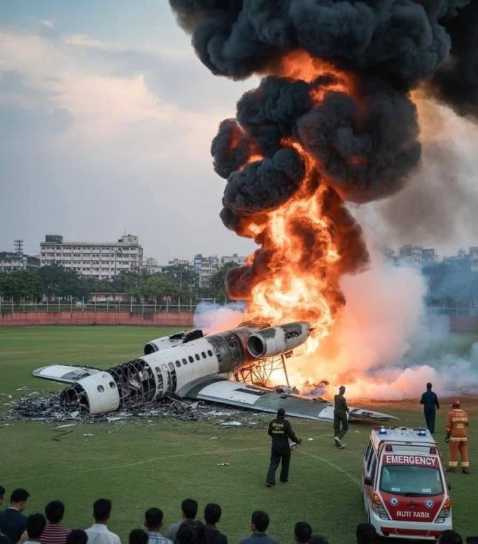 আন্তঃবাহিনী জনসংযোগ পরিদপ্তর (আইএসপিআর) জানিয়েছে, বাংলাদেশ বিমান বাহিনীর এফ-৭ বিজিআই প্রশিক্ষণ বিমান উত্তরায় বিধ্বস্ত হয়েছে। বিমানটি দুপুর ১টা ৬ মিনিটে উড্ডয়ন করে।