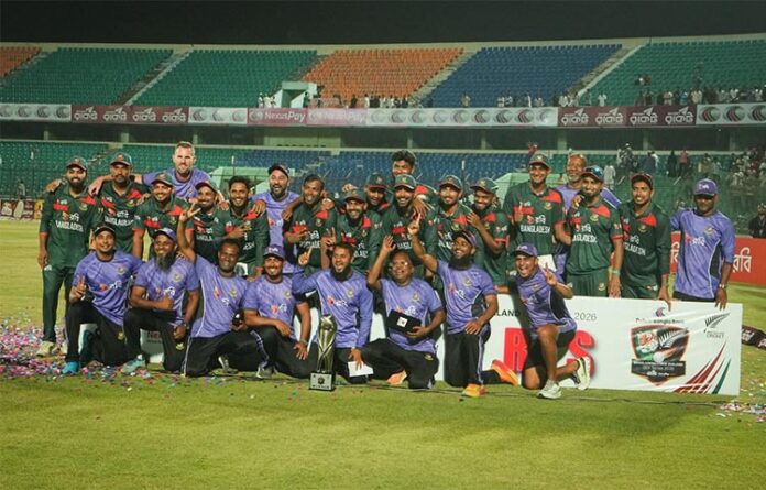 শান্ত ম্যাচসেরা ও ৮ উইকেট শিকারী নাহিদ রানা সিরিজ সেরা হেেছন। প্রচন্ড তাপদাহে বৃহস্পতিবার তৃতীয় ও শেষ ম্যাচে চট্টগ্রামের বীর শ্রেষ্ঠ শহীদ ফ্লাইট লেফটেন্যান্ট মতিউর রহমান স্টেডিয়ামে প্রথমে ব্যাট করা স্বাগতিকদের শুরুটা ভালো হয়নি। শেষ পর্যন্ত নাজমুল হোসেন শান্ত ও লিটনের ব্যাটিং দৃঢ়তা ও পরে মোস্তাফিজের ৫ উইকেট এবং মিরাজ-রানার জোড়া উইকেট তুলে নেয়ার কৃতিত্বে অনেকটা ফাঁকা গ্যালারিতে ৫৫ রানে কিউইদের বধ করে মিরাজবাহিনী। এতে ২-১ এ সিরিজ নিজেদের করে নেয় বাংলাদেশ।