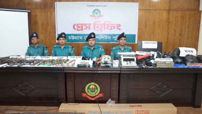 চান্দগাঁও থানা পুলিশ জানায়, অভিযানে সন্ত্রাসী ও মাদক কারবারি শহিদুল ইসলাম বুইশ্যা এবং আইয়ুব আলীর আস্তানায় অভিযান চালিয়ে ১৩টি অস্ত্র উদ্ধার করা হয়। অভিযানে বন্দুকের তাজা কার্তুজ ৫৮টি, খোসা দুটি, পিস্তলের ম্যাগাজিন ১৩টি, পিস্তলের বুলেট ৯৫টি, পটকা ৯টি, নগদ ৪ লাখ ২০ হাজার টাকা, টাকা গণনার মেশিন, ওয়াকিটকি, ড্রোন, সিসি ক্যামেরা, ডিভিআর, ড্রিল মেশিন, বৈদ্যুতিক কাটার, সাড়ে ৩ হাজার পিস ইয়াবা এবং একটি মোটরসাইকেল উদ্ধার করা হয়েছে।