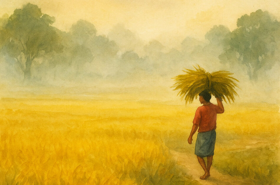 ক্ষেতের বুকে সোনালি ধান দোলে