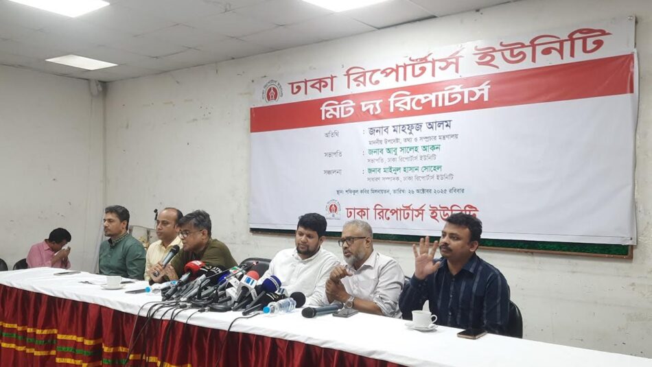 ডিআরইউ সভাপতি আবু সালেহ আকনের সভাপতিত্বে এবং সাধারণ সম্পাদক মাইনুল হাসান সোহেলের সঞ্চালনায় অনুষ্ঠানে উপস্থিত ছিলেন তথ্য ও সম্প্রচার মন্ত্রণালয়ের উপদেষ্টা মাহফুজ আলম।