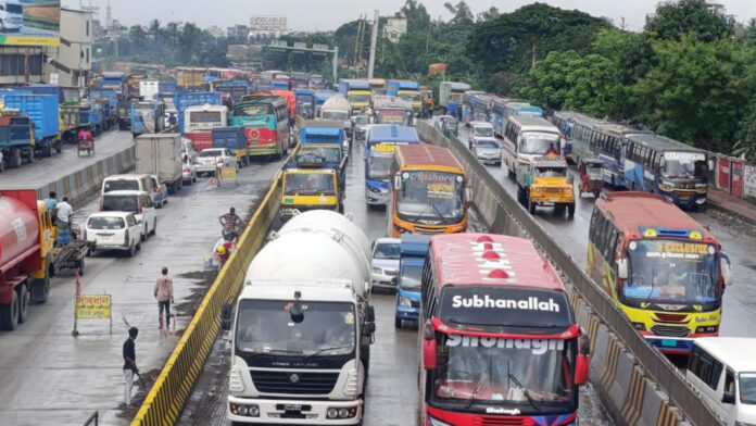 ঢাকা-চট্টগ্রাম ও ঢাকা-সিলেট মহাসড়কে দীর্ঘ যানজট