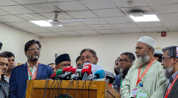 প্রধান নির্বাচন কমিশনার (সিইসি) এএমএম নাসির উদ্দিনের সঙ্গে দেখা করে তিনটি আসনের কিছু কেন্দ্রের ভোট স্থগিতের দাবি জানিয়েছে বাংলাদেশ জামায়াতে ইসলামী।