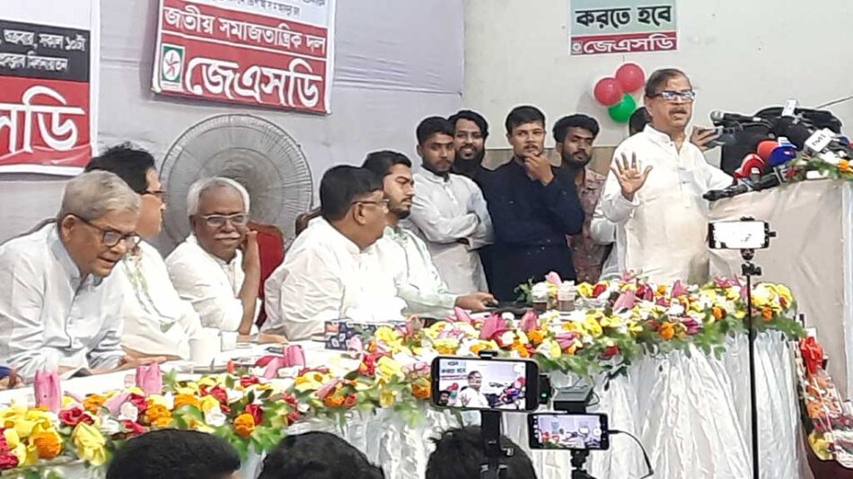 জাতীয় প্রেসক্লাব মিলনায়তনে জাতীয় সমাজতান্ত্রিক দল-জেএসডির ৫৩তম প্রতিষ্ঠবার্ষিকীর আলোচনা সভায় বক্তব্য রাখছিলেন মান্না।