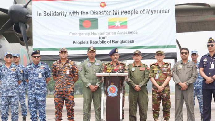মঙ্গলবার (১ এপ্রিল) সকালে প্রধান উপদেষ্টা ড. মুহাম্মদ ইউনূসের নির্দেশে বাংলাদেশ সেনাবাহিনী (বিএ) এবং বাংলাদেশ বিমান বাহিনীর (বিএএফ) তিনটি পরিবহন বিমানের মাধ্যমে এ সরবরাহ ও ওষুধ পাঠানো হয়েছে।