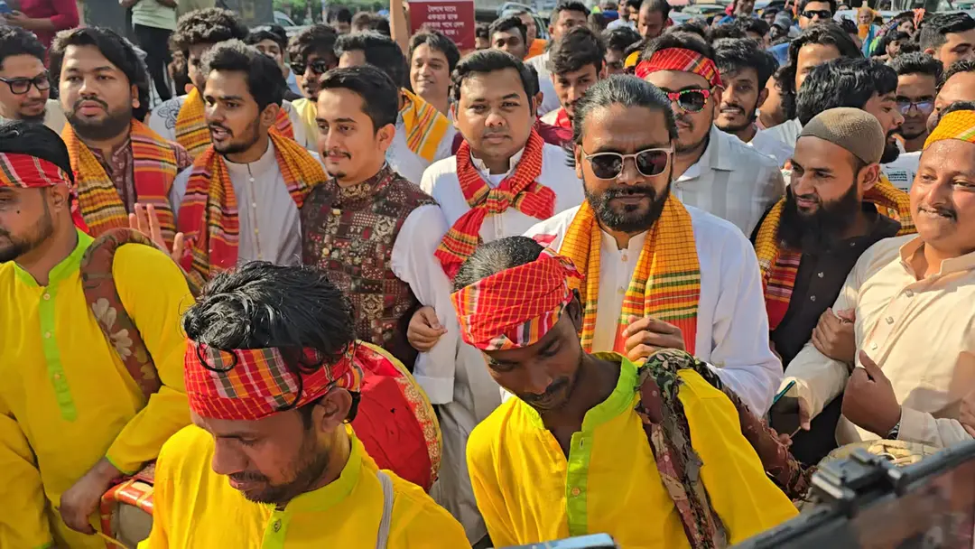 বাংলা নতুন বছরকে বরণ করতে বর্ণাঢ্য বৈশাখী শোভাযাত্রা করেছে জাতীয় নাগরিক পার্টি (এনসিপি)। র্যালিতে দলটির কেন্দ্রীয়, মহানগর ও থানা পর্যায়ের নেতাকর্মীরা অংশ নিয়েছেন।