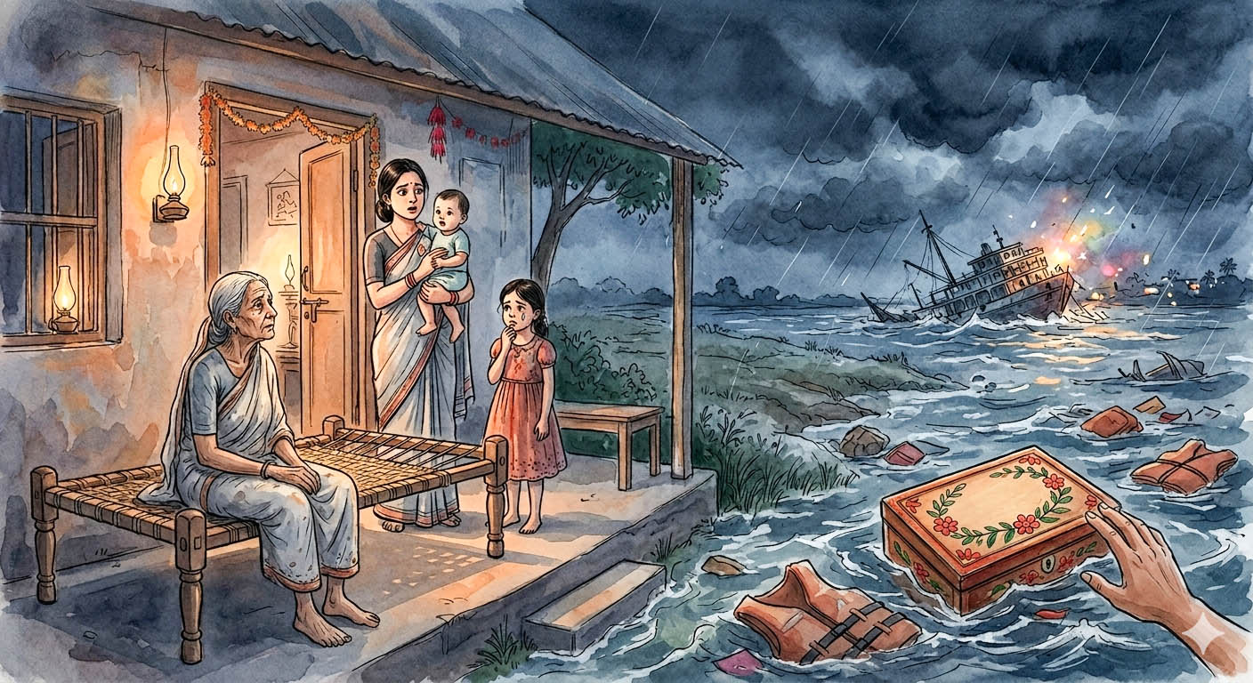পরের দিন ভোর সাতটার দিকে ওপাড়ার রহিম একটি বাক্স হাতে দৌড়ে দৌড়ে এসে হাঁপাতে হাঁপাতে খবর দিল জাহিদের স্টিমারটা ডুবে গেছে, খুব কম সংখ্যক লোক জানে বেঁচে আছে।