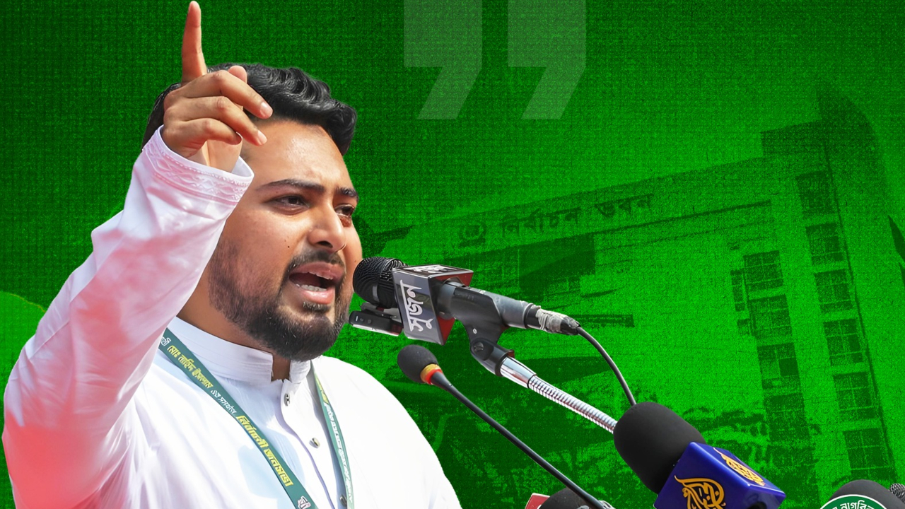 নাহিদ ইসলাম বলেন, ইলেকশন কমিশন একটি বিজ্ঞপ্তি দিয়েছে, ৪০০ মিটারের মধ্যে ফোন নিয়ে যেতে পারবে না, আজকে সন্ধ্যার মধ্যে এই বিধি–বিধান পরিবর্তন না করলে আগামীকাল ইলেকশন কমিশন ঘেরাও করা হবে।