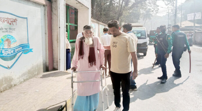 সত্তরোর্ধ্ব মোহাম্মদ সানাউল্লাহ নগরের পাহাড়তলী এলাকার মাস্টার লেইনের বাসিন্দা। বয়সের ভারে ন্যুব্জ হলেও ওয়াকারের ওপর ভর করে নাতি মোহাম্মদ জনিকে সঙ্গে নিয়ে তিনি ভোট দিতে এসেছেন পাহাড়তলীর বাংলাদেশ রেলওয়ে সরকারি উচ্চ বিদ্যালয় কেন্দ্রে।