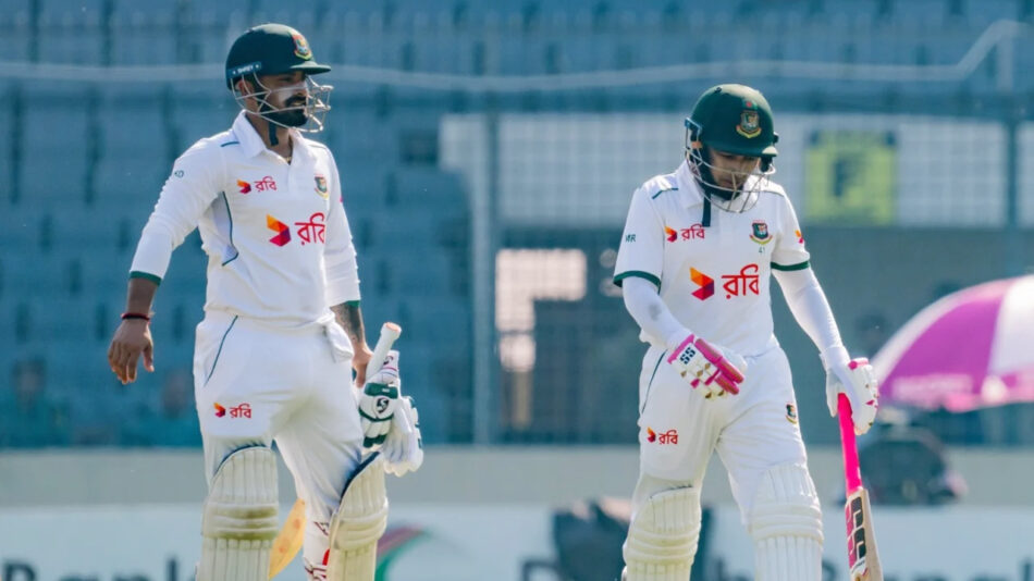 মিরপুর শের-ই বাংলা স্টেডিয়ামে দ্বিতীয় টেস্টের প্রথম দিনে নাজমুল হোসেন শান্ত’র দল ৪ উইকেটে ২৯২ রান করেছিল। আজ (বৃহস্পতিবার) দ্বিতীয় দিনের শুরুতেই সেঞ্চুরি পূর্ণ করেন আগেরদিন ৯৯ রানে অপরাজিত থাকা মুশফিক। বিশ্বের মাত্র ১১তম ব্যাটার হিসেবে তিনি শততম মাইলফলক ম্যাচ সেঞ্চুরিতে রাঙিয়েছেন। তার ১০৬ রানের পর লিটনের পঞ্চম টেস্ট সেঞ্চুরি থেমেছে ১২৮ রানে। এ ছাড়া মুমিনুল হক ৬৩ এবং মেহেদী হাসান মিরাজ করেন ৪৭ রান।