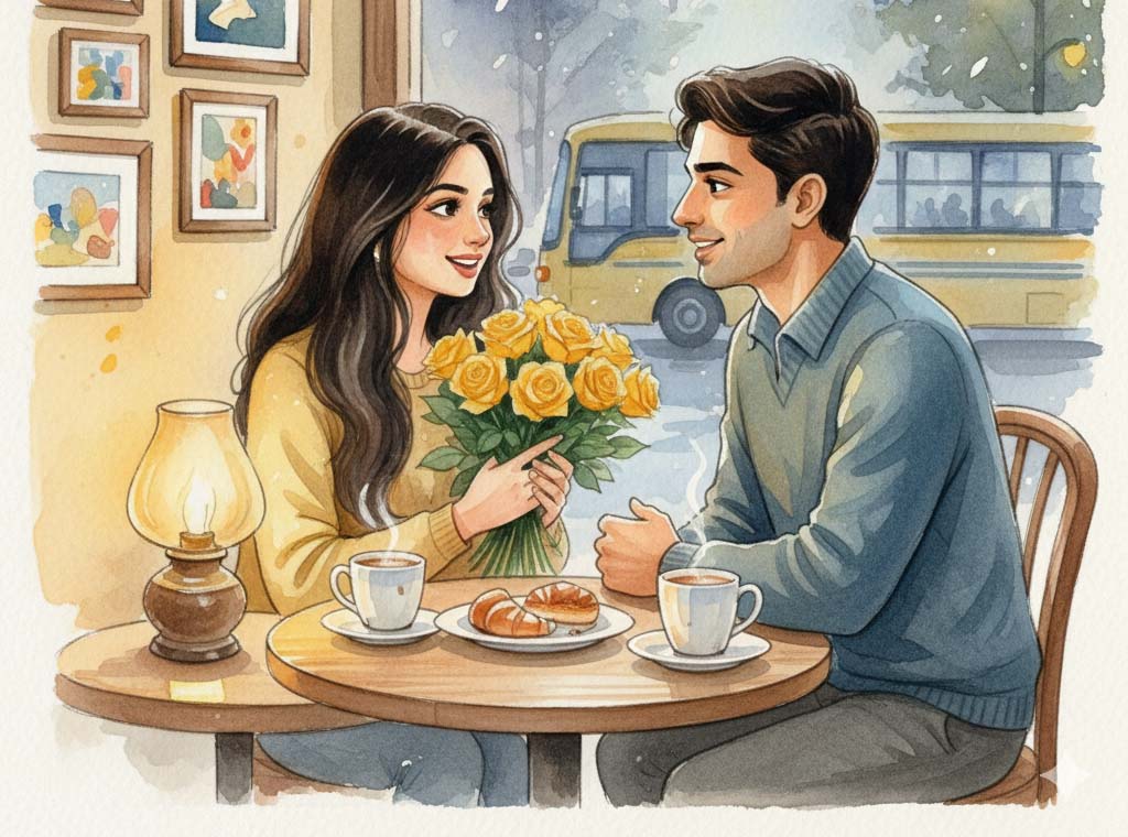 হালকা হিমবাতাসে পড়ন্তি সন্ধ্যায় রৌদ্রময়ী ছেলেটাকে নিয়ে যায় পছন্দের একটা ক্যাফেতে । ছোটখাটো কথা ভিড়ে ছেলেটা তার পড়ে থাকা জ্যাকেটের ভেতর থেকে জাদুকরের মতোই একগুচ্ছ হলুদ গোলাপ বের করে দিয়ে বসে রৌদ্রময়ীর হাতে। ছেলেটার এমন আকস্মিকতায় রৌদ্রময়ী খানিকটা তব্দা খেয়ে গেলো বৈকি! একথা ওকথার ভিড়ে খাবারের প্লেটের খাবার শেষ হয়ে যায় কিন্তু কথা ফুরোয় না দুজনের।
