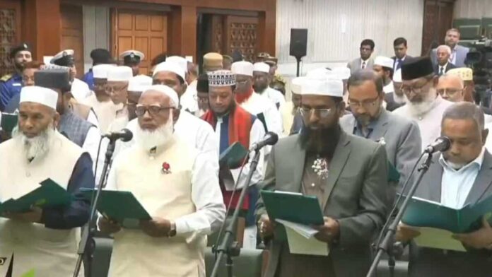 জাতীয় সংসদ সদস্য ও সংবিধান সংস্কার পরিষদের সদস্য হিসেবে শপথ নিয়েছেন জামায়াতের নির্বাচিত সংসদ সদস্যরা। একইসঙ্গে শপথ নিয়েছেন ১১ দলীয় ঐক্য জোটের সংসদ সদস্যরাও। তাদের শপথ বাক্য পাঠ করান সিইসি এ এম এম নাসির উদ্দিন।