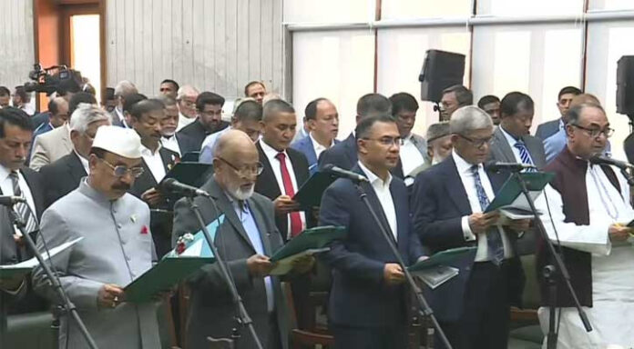 নতুন সরকারে শপথ নিয়েছেন সংসদ সদস্যরা (এমপি)। মঙ্গলবার (১৭ ফেব্রুয়ারি) বেলা পৌনে ১১টার দিকে শপথ কক্ষে প্রধান নির্বাচন কমিশনার (সিইসি) এ এম এম নাসির উদ্দিনের কাছে শপথ নেন তারেক রহমানসহ বিএনপির এমপিরা।