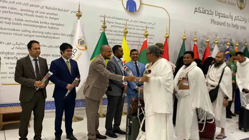 হজযাত্রীদের ফুল দিয়ে শুভেচ্ছা জানানো হয় এবং তাদের হাতে রিফ্রেশমেন্ট কিট তুলে দেওয়া হয়।
