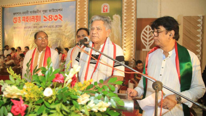 রোববার ( ২১ সেপ্টেম্বর) সকালে রাজধানীর গুলশান- বনানী সার্বজনীন পূজা ফাউন্ডেশনে শুভ মহালয়া ১৪৩২ উদযাপন উপলক্ষ্যে আয়োজিত এক অনুষ্ঠানে তিনি এ কথা বলেন।