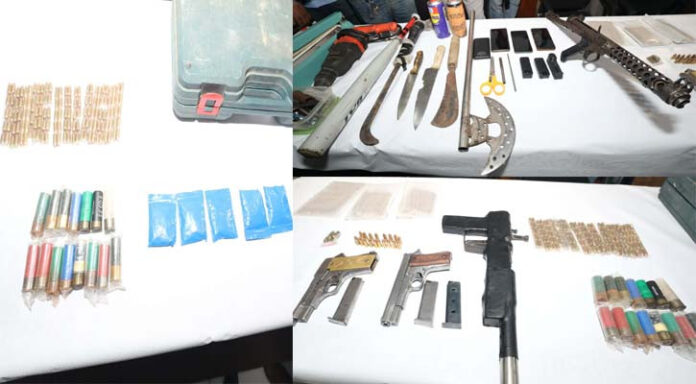 বাসা থেকে দুটি বিদেশি পিস্তল, একটি বিদেশি এসএমজি (ম্যাগাজিনসহ), একটি দেশীয় পাইপগান, তিনটি পিস্তলের ম্যাগাজিন, ৪৫৫টি তাজা পিস্তলের গুলি, ১৪টি শর্টগানের কার্তুজ, একটি খালি কার্তুজ, একটি চাপাতি, একটি রামদা, তিনটি ছোরা ও একটি কাঁচি উদ্ধার করা হয়।এ ছাড়া ৮৮০টি ইয়াবা ট্যাবলেট, তিনটি অ্যান্ড্রয়েড মোবাইল ফোন, একটি পাওয়ার ব্যাংক, দুটি বডি ওর্ন ক্যামেরা, একটি ব্যাটারি চার্জার, একটি অস্ত্রের কিট বক্স, দুটি স্প্রে কিট, একটি লোহার বেসবল ব্যাট, একটি ড্রিল মেশিন, দুটি পলিথিন সিল মেশিন, একটি টুলবক্স ও একটি মোটরসাইকেল জব্দ করা হয়।তিনি জানান, অভিযানের সময় সন্দেহভাজন ব্যক্তিরা পালানোর চেষ্টা করলে ধাওয়া দেওয়া হয়। এ সময় তারা পুলিশকে লক্ষ্য করে গুলি ছোড়ে।পুলিশও পাল্টা গুলি ছুড়লে দুজনকে গ্রেপ্তার করা সম্ভব হয়। এ ঘটনায় আরও কয়েকজন পালিয়ে গেছেন। গ্রেপ্তার ব্যক্তিদের বিরুদ্ধে আইনগত ব্যবস্থা প্রক্রিয়াধীন রয়েছে।