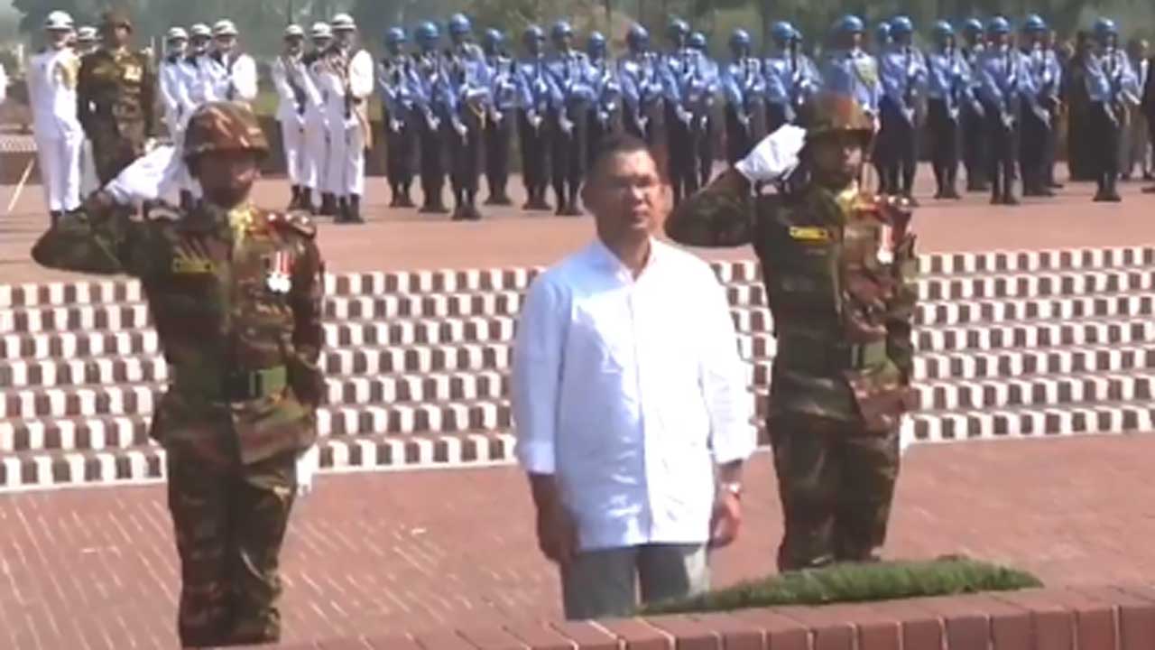 সাভারের জাতীয় স্মৃতিসৌধে একাত্তরে মুক্তিযুদ্ধে বীর শহীদদের প্রতি শ্রদ্ধা নিবেদন করেছেন প্রধানমন্ত্রী তারেক রহমান।