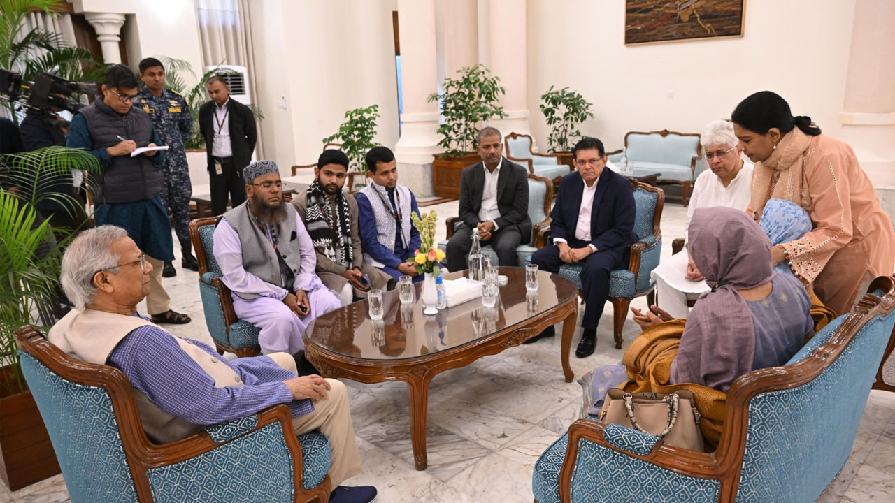এ সময় আইন উপদেষ্টা আসিফ নজরুল, পরিবেশ, বন ও জলবায়ু উপদেষ্টা রিজওয়ানা হাসান, শিল্প উপদেষ্টা আদিলুর রহমান খান ও জাতীয় নিরাপত্তা উপদেষ্টা খলিলুর রহমানও সেখানে উপস্থিত ছিলেন।