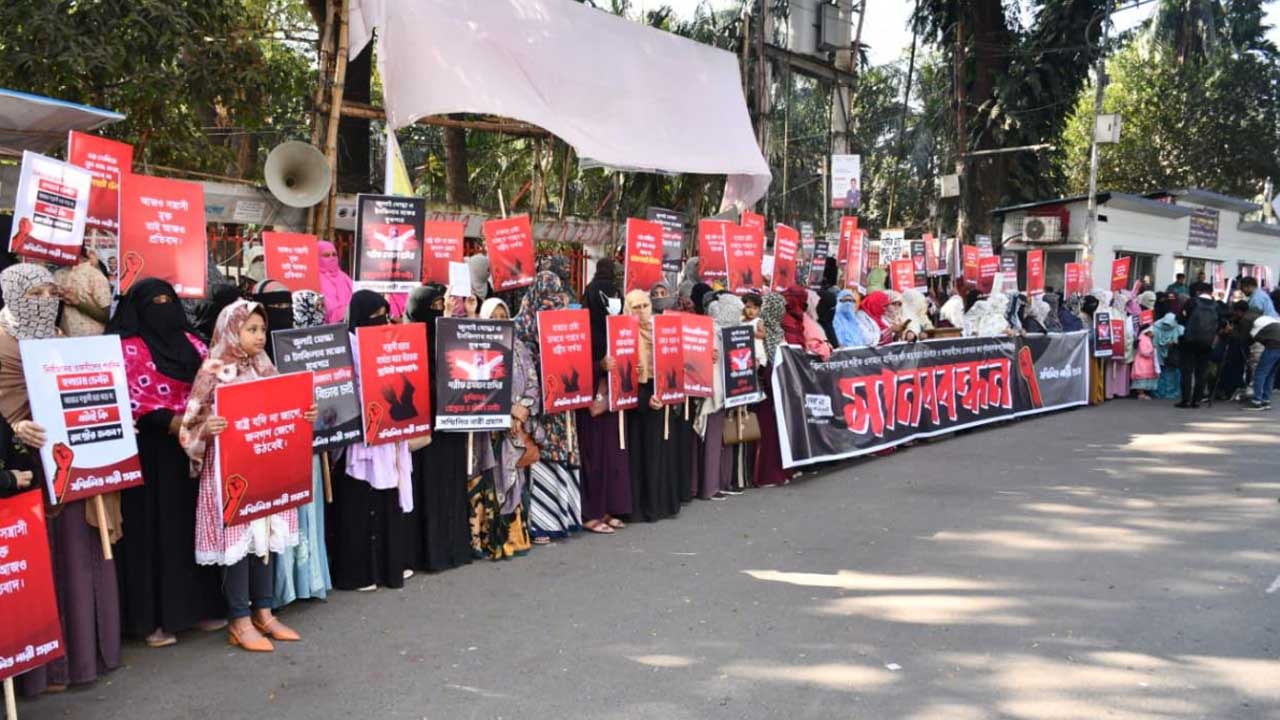 মানববন্ধনে আরও উপস্থিত ছিলেন সম্মিলিত নারী প্রয়াসের সেক্রেটারি ড. ফেরদৌস আরা খানম, সহকারী সেক্রেটারি মাহসিনা মমতাজ মারিয়া, সদস্য লাবিন রহমান, নিশাত শারমিন, ঢাকা বিশ্ববিদ্যালয়ের শিক্ষক সাবিনা ইয়াসমিন, জুলাইযোদ্ধা জান্নাতুন নাঈম প্রমি, সদস্য রায়হানা নাসিম প্রমুখ।