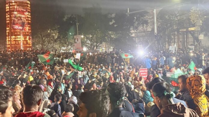 শনিবার (২৭ ডিসেম্বর) সন্ধ্যায় সরেজমিনে দেখা যায়, ইনকিলাব মঞ্চের নেতা-কর্মী, শিক্ষার্থী ও সাধারণ জনতা শাহবাগ মোড়ে অবস্থিত ‘শহীদ হাদি চত্বরে’ অবস্থান নিয়েছেন।