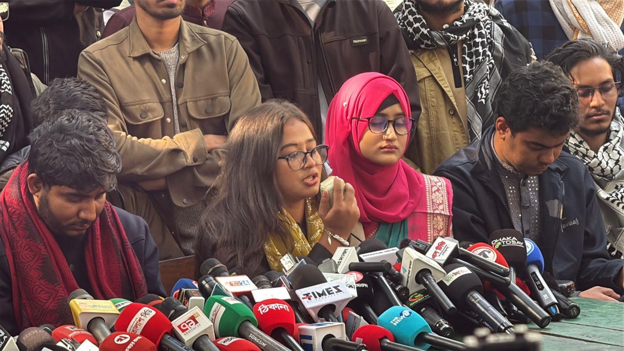 সংবাদ সম্মেলনে তিনি আরও জানান, কারাগারে তার সঙ্গে জগন্নাথ বিশ্ববিদ্যালয়ের তানজিলা তাবাসসুম নামের আরেকজন শিক্ষার্থী ছিলেন। তিনি বলেন, “তাকে এমনভাবে আটকে রাখা হয়েছে যে তার পরিবার কিংবা তার বিশ্ববিদ্যালয়— কেউ জানে না সে কোথায়। সেও আমাদের মতো প্রতিবাদী ছিল। আমাদের কণ্ঠ এভাবে রোধ করা হচ্ছে কেন?”