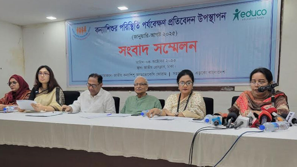 কন্যাশিশুর প্রতি নির্যাতন ও সহিংসতার চিত্র পর্যবেক্ষণ বিষয়ক এক প্রতিবেদনে এসব তথ্য উঠে এসেছে। প্রতিবেদনটি তৈরি করেছে জাতীয় কন্যাশিশু অ্যাডভোকেসি ফোরাম।