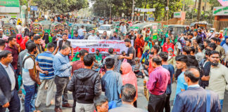 চমেকের মূল ফটকে রাস্তা অবরোধ করে বিক্ষোভ