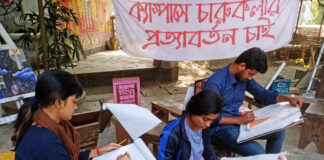 গাছতলায় ক্লাস করলেন চারুকলার শিক্ষার্থীরা