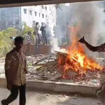 রাজধানীতে কার্যক্রম নিষিদ্ধ আওয়ামী লীগের কেন্দ্রীয় কার্যালয়ে আগুন দেওয়া হয়েছে