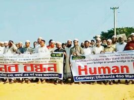 সীতাকুণ্ডে মানববন্ধন বর্ধিত ভাড়া প্রত্যাহার ও যাত্রী হয়রানির প্রতিবাদ
