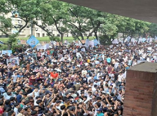 দাবি না মানা পর্যন্ত সড়ক ছাড়বে না সাত কলেজ শিক্ষার্থীরা