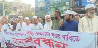 চট্টগ্রাম-কক্সবাজার মহাসড়ককে চার লাইনে উন্নীতকরণের দাবিতে মানববন্ধন