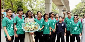 নতুন বছরকে স্বাগত জানাতে ঢাকা বিশ্ববিদ্যালয়ে নারী ফুটবল দল