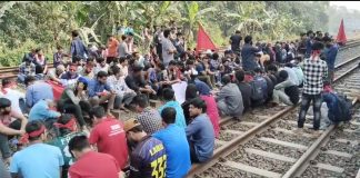 গাজীপুরে শিক্ষার্থীদের রেললাইন অবরোধ, ঢাকা-রাজশাহী ট্রেন চলাচল বন্ধ