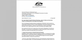 বাংলাদেশে নির্বাচনি রোডম্যাপ চেয়ে ড. ইউনূসকে অস্ট্রেলিয়ার ৪১ এমপির চিঠি