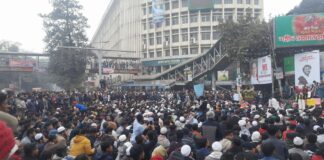 ওসমান হাদি হত্যার বিচারের দাবিতে নিউমার্কেট এলাকায় অবস্থান কর্মসূচি