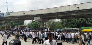 রাজধানীর তেজগাঁও সাতরাস্তা মোড়ে কারিগরি শিক্ষার্থীদের অবরোধ