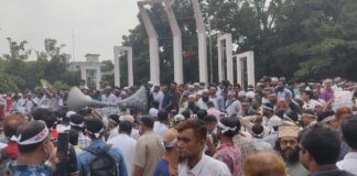 শহীদ মিনারে বিপুলসংখ্যক শিক্ষকের অবস্থান