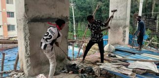 এস এস খালেদ রোডে ভাঙা হচ্ছে নকশা বহির্ভূত ভবন