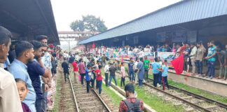 সিলেটে রেলপথ সংস্কার ও উন্নয়নসহ আট দফা দাবিতে রেলপথে অবরোধ কর্মসূচি